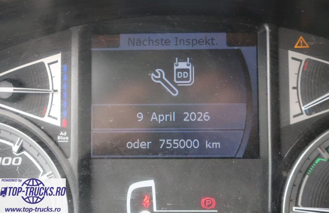 Euro 6, transmisie automata, sistem de navigatie, retarder/intarder, incalzire auxiliara, volan multifunctional, frigider, 2 paturi, pachet eleron, capacitate rezervor de combustibil 845 L (aluminiu) + 430 L (aluminiu), etc.