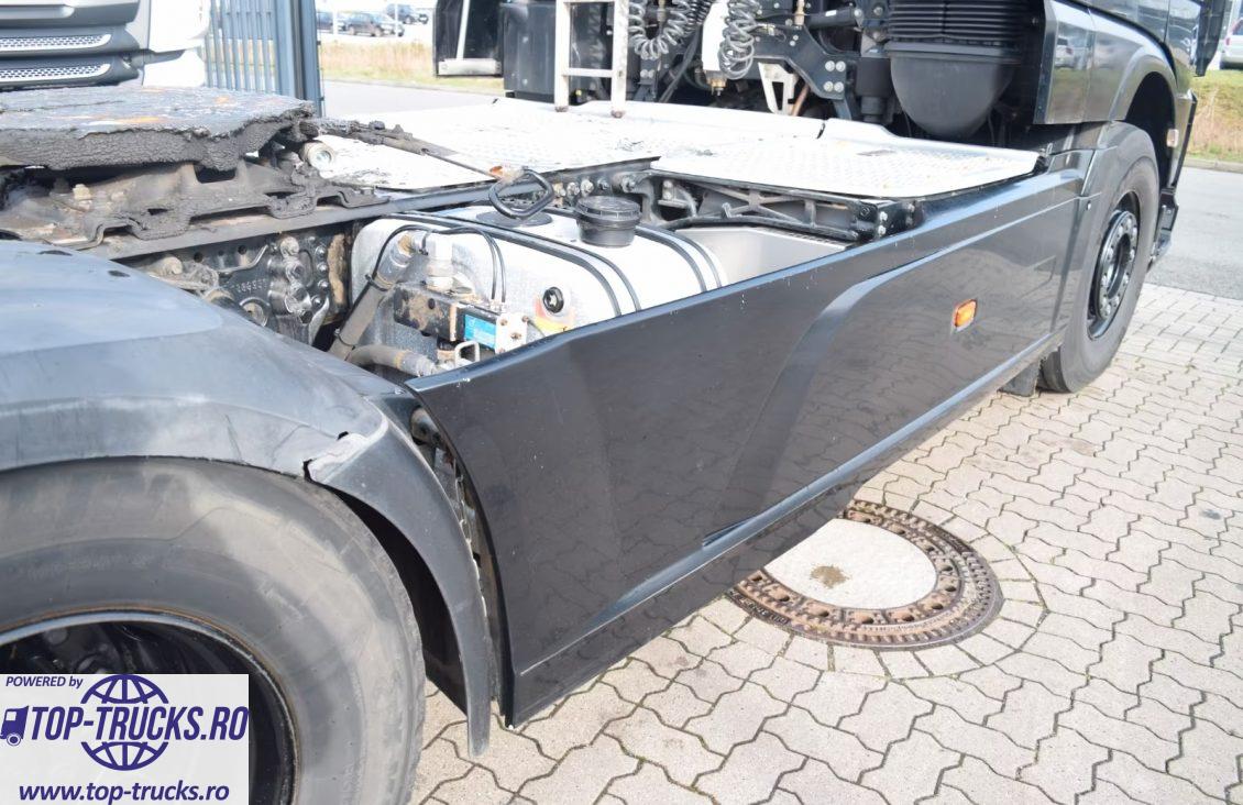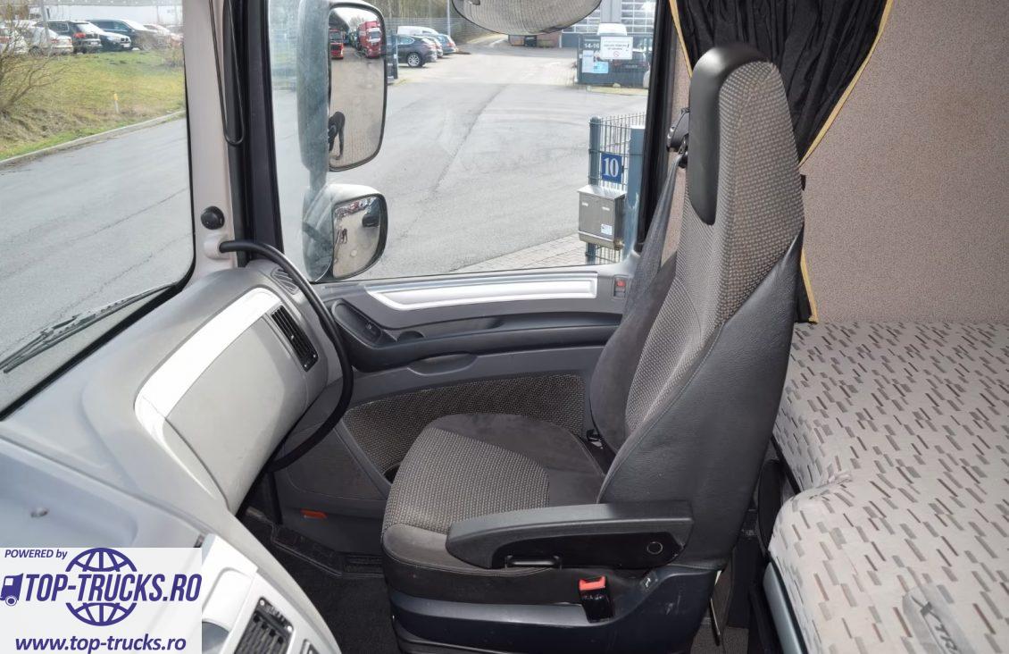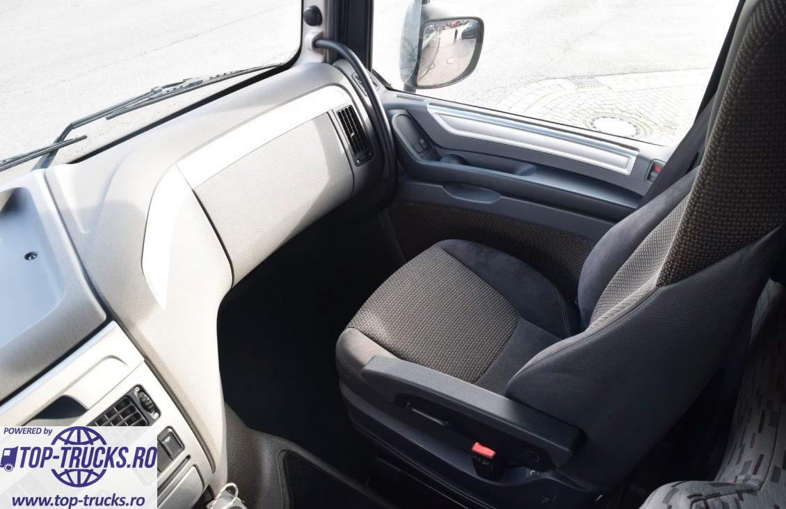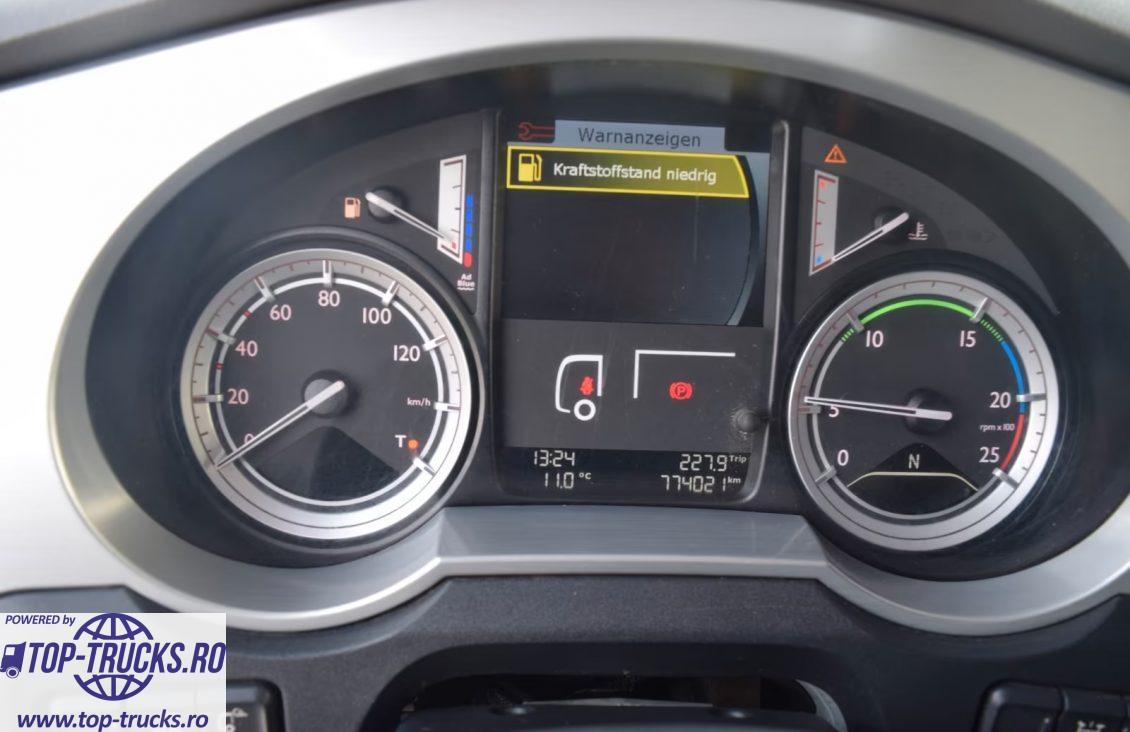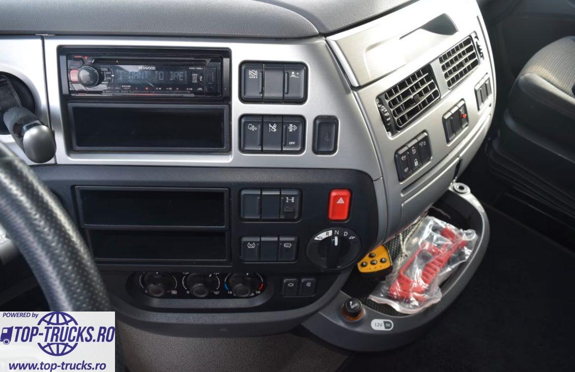 Euro 6, transmsisie automata, ABS, EBS, ESP, retarder/intarder, incalzire auxiliara, aer conditionat stationar, frigider, sistem hidraulic de basculare; priză de putere; faruri xenon, carte service, etc.
