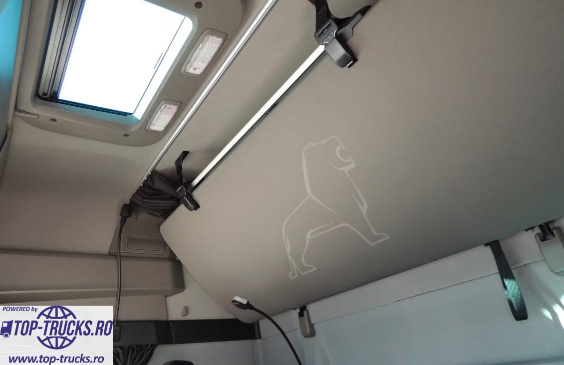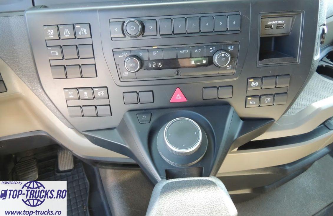 Euro 6, transmsie automata, ABS, EBS, ESP, sistem de navigatie, incalzire auxiliara, aer conditionat stationar, Cabină GX, 2 paturi supraetajate, pachet aero, ACC, frigider, scaun incalzit, anvelope 315/70 R 22.5, rezervor din aluminiu 580+580 litri, carte service, etc.