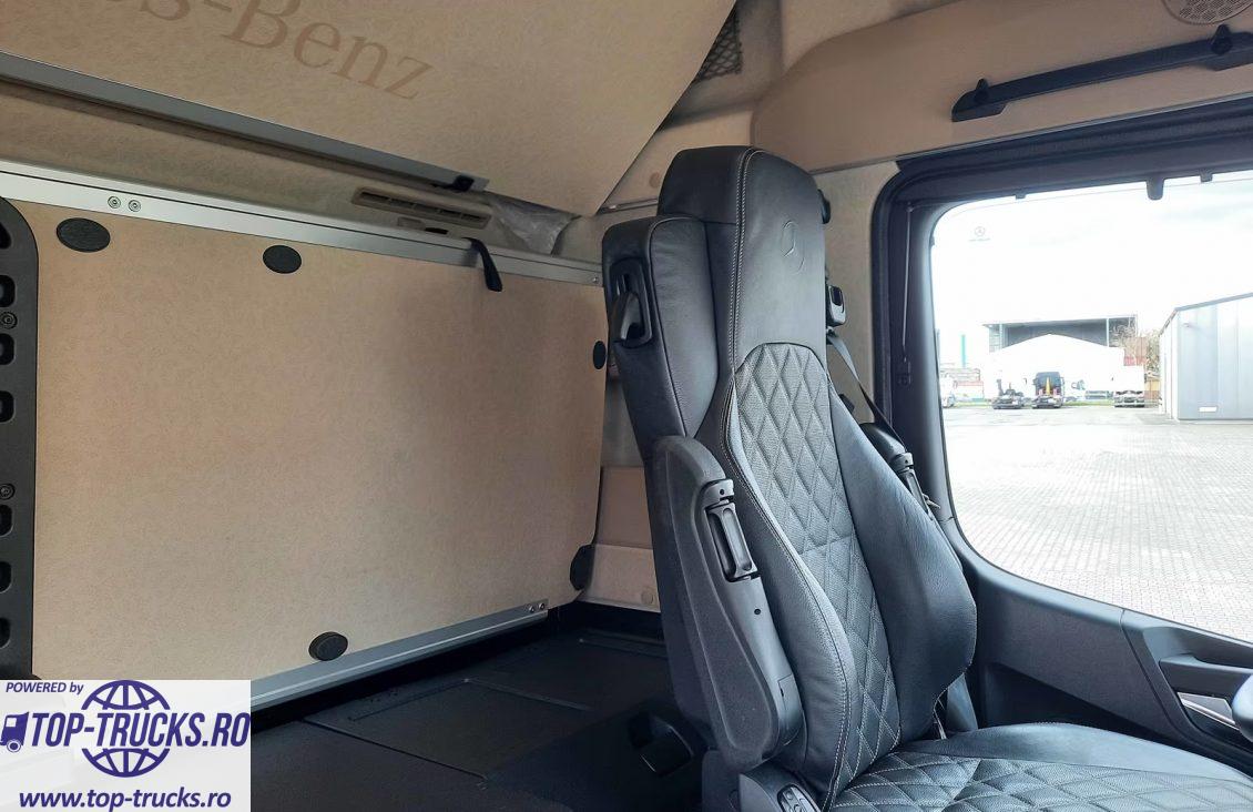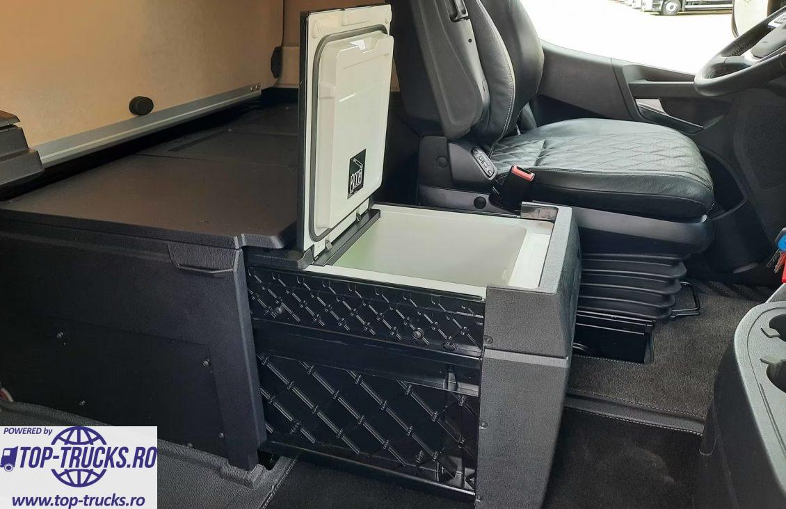 Euro 6, transmisie automata, ABS, EBS, sistem de navigatie, retarder/intarder, incalzire auxiliara, aer conditionat stationar, frigider, senzor de ploaie si lumina, trapa electrica, jante din aluminiu, LED, etc.